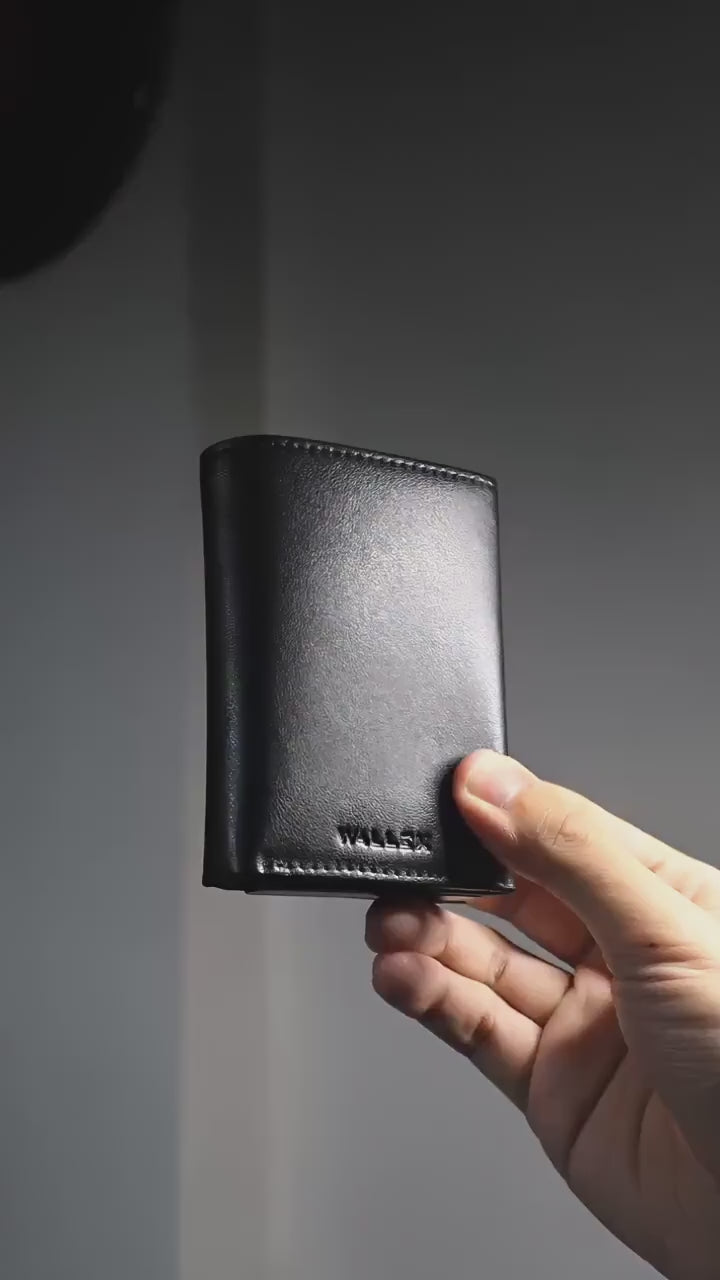 The Wallex 3 is our most complete wallet. Quick pop up access to cards, dedicated cash and coin compartment with added RFID-blocking protection.